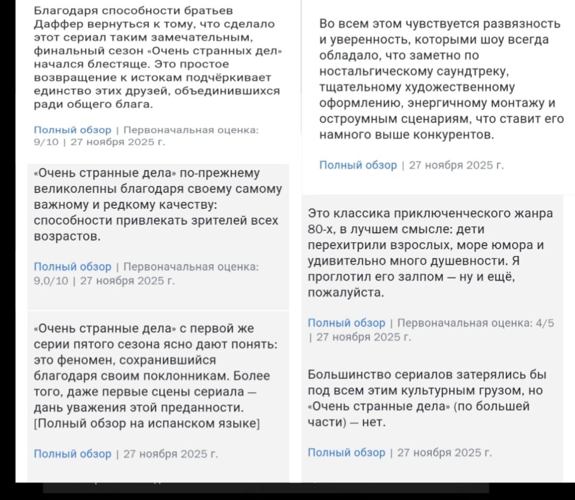 "Очень странные дела" по-прежнему великолепны благодаря своему самому важному качеству: способности привлекать зрителей всех возрастов", — говорится в одном из отзывов.