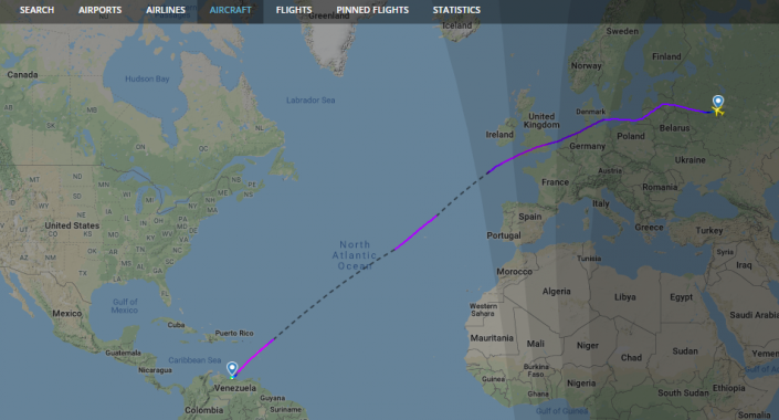 Самолет вылетел утром 2 марта из района рядом с военным аэродромом Чкаловский в Московской области, в ночь на 3 марта борт зафиксировали в районе Каракаса. Днем 3 марта он уже был на обратном пути. При этом Flightradar24 зафиксировал лишь некоторые участки перелета: экипаж мог отключать транспондер, чтобы не передавать все координаты полета.