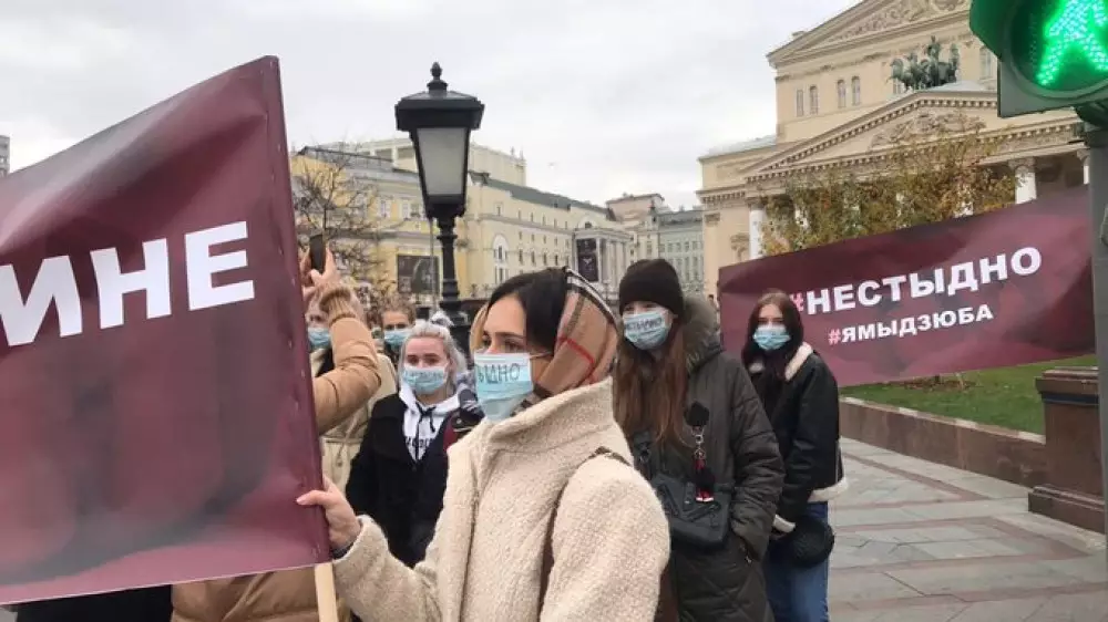 Акция состоялась у Большого театра в четверг, 12 ноября. В мероприятии приняли участие несколько десятков молодых девушек. Они надели маски и подняли баннеры с надписями #нестыдно, #ямыдзюба, #вседелаютэто.