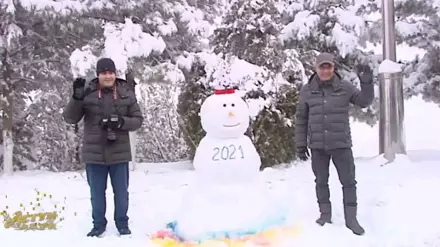 В воскресенье, 27 декабря, Бердымухамедов и его внук Керим прогулялись в предгорьях Копетдага, где слепили снеговика и пофотографировали. Накануне этого дня в стране прошли обильные снегопады.