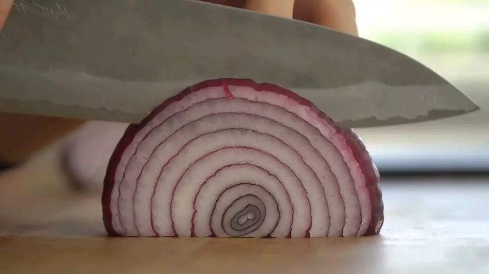 Идеальным Итан назвал другой способ нарезки лука - продольно, то есть параллельно корню и стеблю. Автор видео утверждает, что таким образом можно сохранить структуру лука, получить меньше аромата и избежать слез.