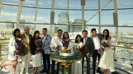 В преддверии Дня семьи, который в Казахстане отмечается 15 мая, молодожены в торжественной обстановке получили свидетельства о браке на вершине монумента "Байтерек", сообщает официальный сайт акимата, передает Tengrinews.kz.