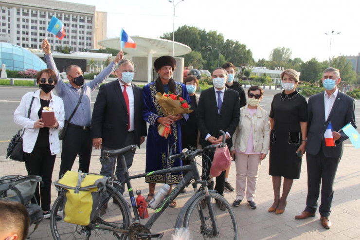 Вице-президент "Общества дружбы Алматы - Ренн и города мира" Айгуль Касымбек рассказала, что на протяжении всего пути они поддерживали связь с путешественником и помогали ему. Кроме того, она отметила, что из года в год двусторонние взаимоотношения двух городов становятся крепче, развивается культурно-гуманитарное сотрудничество, проводятся взаимные Дни культуры, выставки.