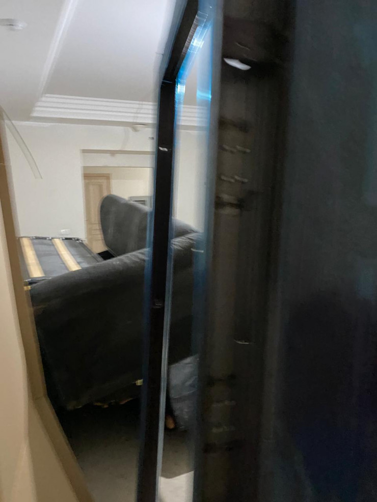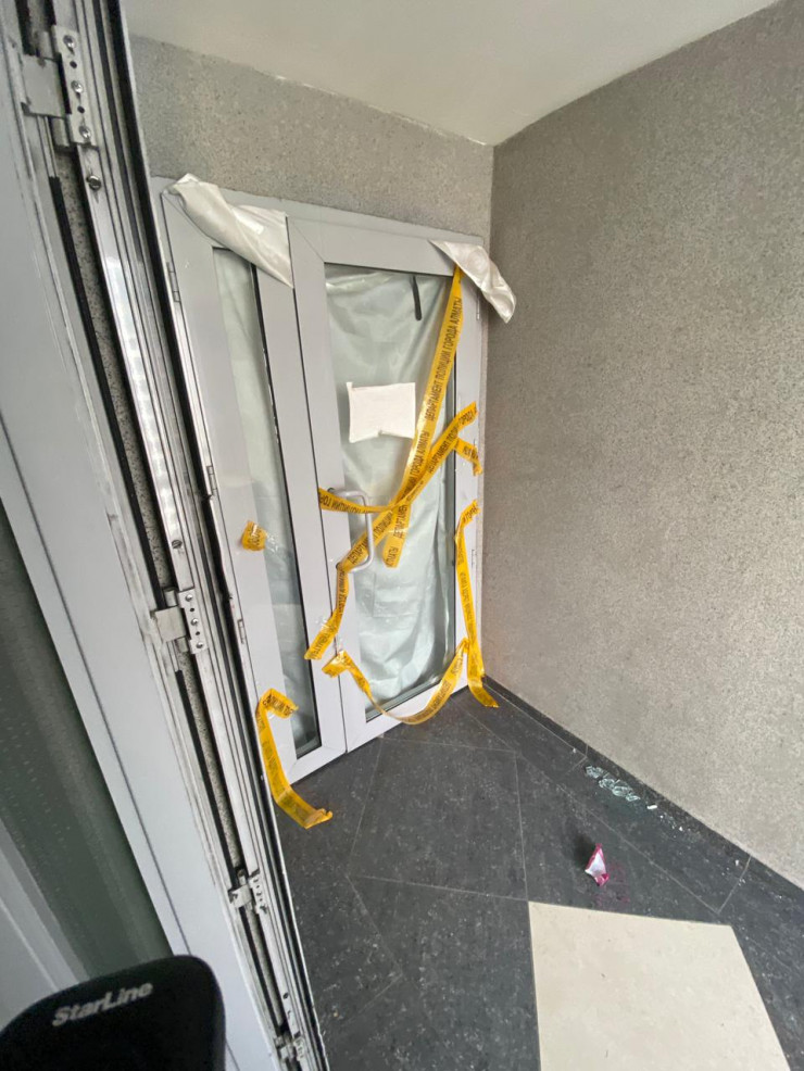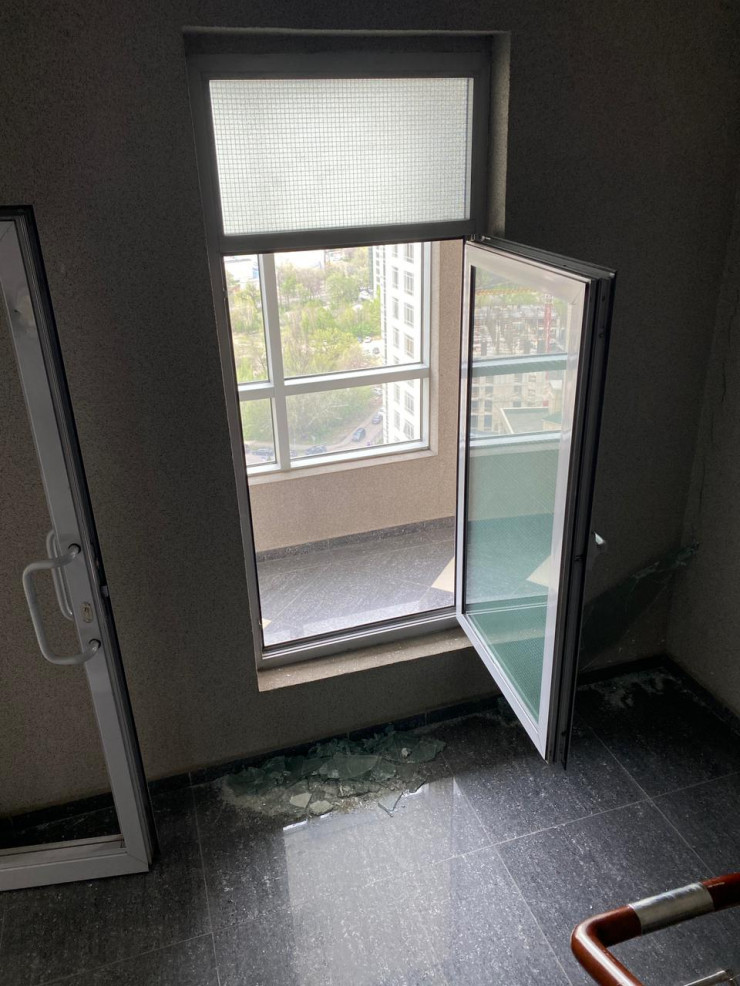 А так выглядит окно, которое накануне разбил мужчина, чтобы выпрыгнуть. Фото сделано из дома напротив.
