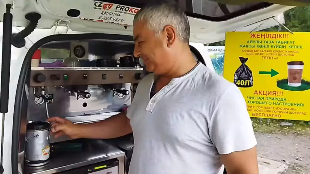Торгующий кофе и другими напитками бизнесмен восхитил отдыхающих в ущелье Алма-Арасан своей акцией, сообщает Tengrinews.kz.