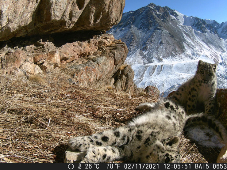 Детеныши снежного барса редко попадают на фотокамеры, поэтому экологи считают удачей возможность разглядеть через фото жизнь краснокнижных животных.