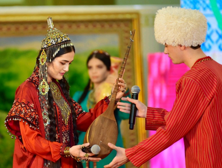 Согласно первому заданию студентки продемонстрировали достижения нашего времени, уважение к туркменским женщинам и девушкам, а также свою способность к искусству и творчеству, продемонстрировали свое мастерство в исполнении восторгающих слов, песен, стихотворений, а также театральных сценок с монологами.