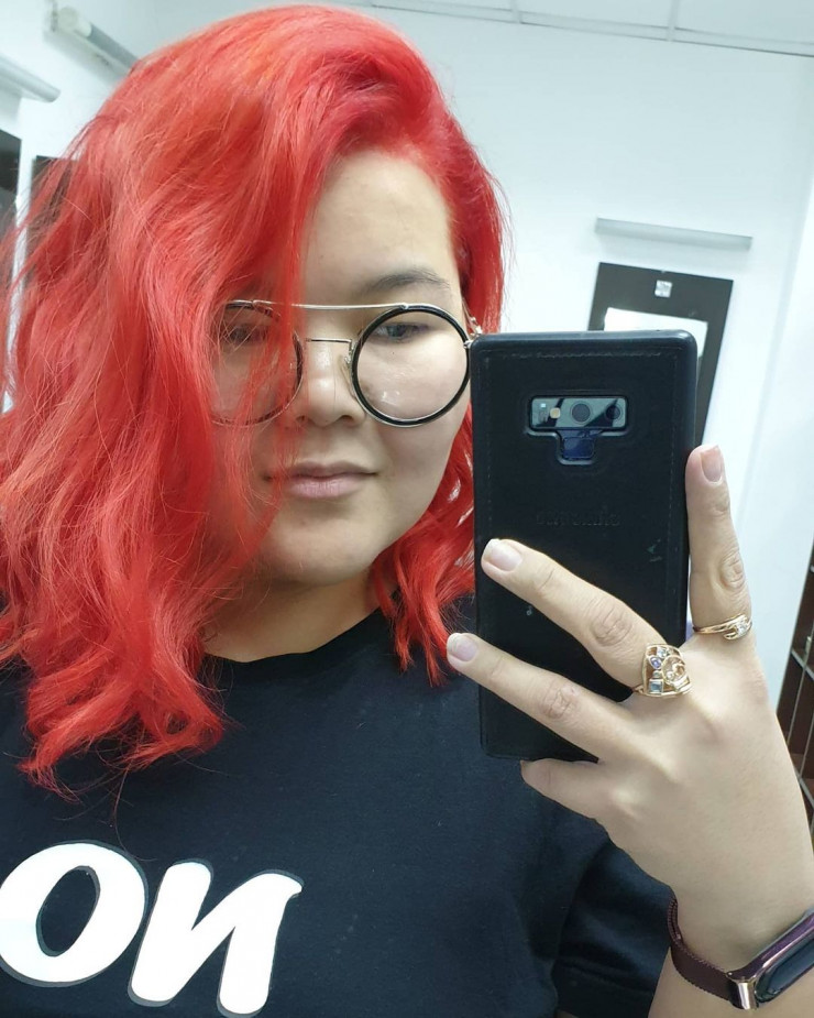Девушка призналась, что к вниманию окружающих привыкла. С детства она отличалась от сверстников, и прохожие часто оборачивались на нее из-за ярких волос и стиля.