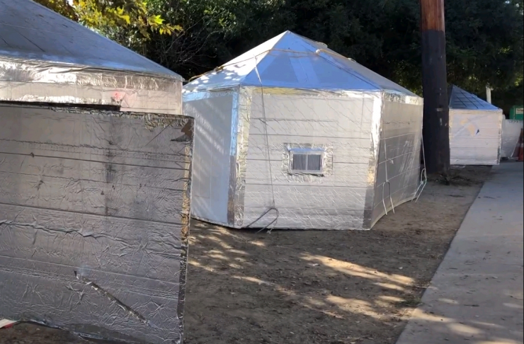 В одном из районов Лос-Анджелеса в этом году поставили семь юрт из пенопласта. Легкая и простая панельная конструкция собирается буквально за несколько минут. Стоит такое сооружение около 250 долларов. Подобная юрта способна защитить как от холода, так и от жары.