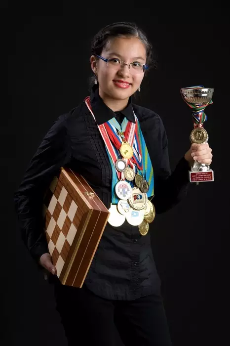 Добавим, что Динара Садуакасова является двукратной чемпионкой мира 2010 (до 14 лет) и 2012 (до 17 лет). Кроме того, она - трижды вице-чемпионка мира и Азии, мастер международного класса с 13 лет, а также мастер спорта Казахстана. На счету Садуакасовой 45 медалей, включая награды многочисленных чемпионатов Казахстана и международных соревнований.