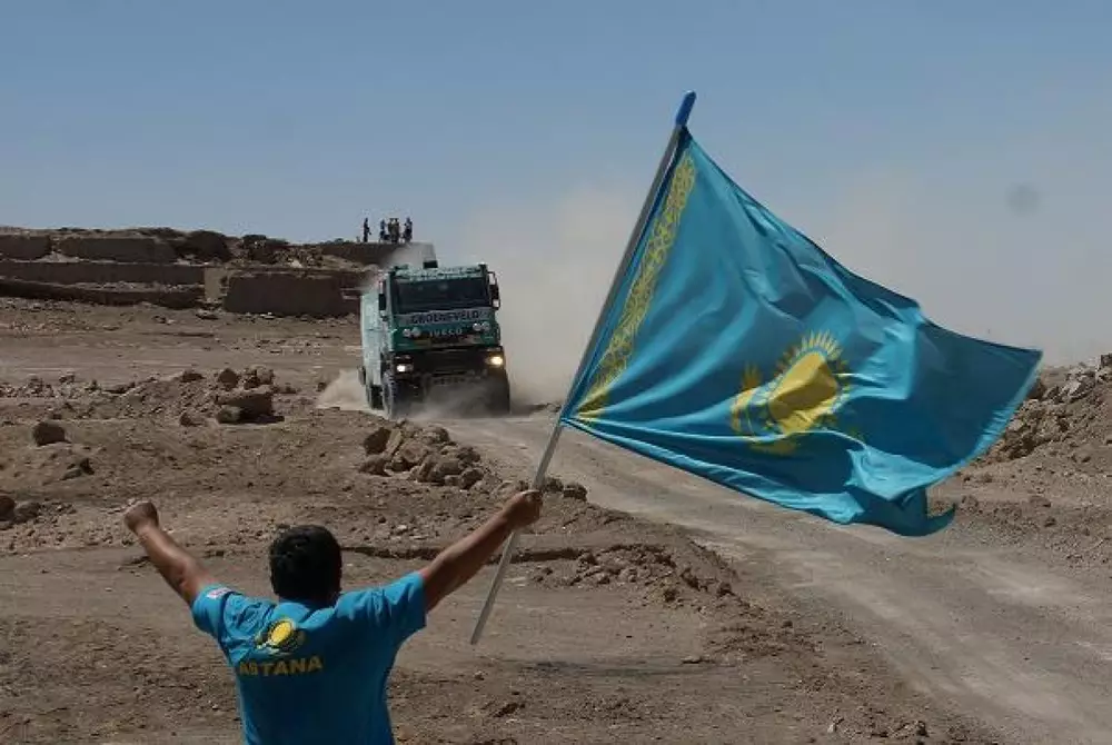 На десятом этапе самого престижного ралли-марафона в мире "Дакар" впервые в истории победу одержал казахстанский экипаж "Астана", который состоит из пилота Артура Ардавичуса, штурмана Алексея Кузьмича и механика Нурлана Турлубаева. Об этом сообщается на официальном сайте гонок. Дистанцию протяженностью 377 километров казахстанцы преодолели за 5 часов 6 минут и 11 секунд. Всего на 2 минуты 18 секунд отстала от "Астаны" российская команда "КАМАЗ-мастер". На третьем месте - лидер в общем зачете - голландец Жерар де Рой. Напомним, десятый этап проходил между чилийскими городами Икике и Арика. До финиша остается еще четыре этапа. Перед очередным стартом "Астана" занимает третье место в общем зачете "Дакара".