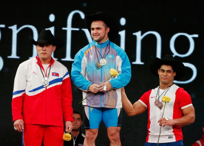 В "толчке" Рахимов стартовал с 195 килограммов, затем заявил 207 килограммов и успешно поднял этот вес. При этом его соперник из Китая получил за упражнение "баранку", так как не смог поднять вес в 201 килограмм. Таким образом, Рахимов лидировал по сумме двух упражнений и принес Казахстану первую медаль на мировом первенстве в Хьюстоне. Подробнее читайте здесь.