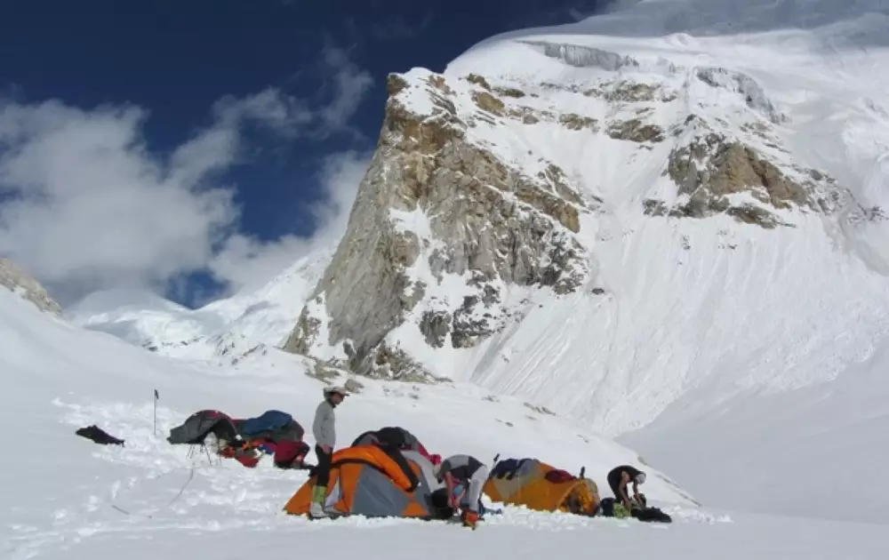 "Снега на склоне в очередной раз выпало больше, чем мы ожидали. Поэтому очень долго добирались до первого лагеря. Да и выше осадков больше. Сантиметров 10-20 выпало. И сейчас на небе тучи, а по прогнозу синоптиков должно было быть солнечно. Посмотрим на то, что будет завтра, и тогда уже начнем подъем", - рассказал Жумаев.