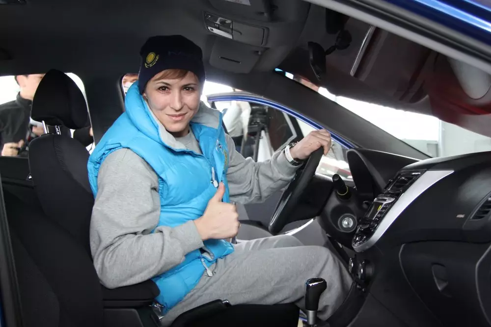 Спортсменка получила в подарок седан Hyundai Accent. Ключи от авто ей вручил генеральный директор КМК "Астана Моторс" - Камиль Ауэзов. Помимо этого Манюрову поздравил заместитель акима Алматы Серик Сейдуманов. Добавим, что на автомобиль заслуженного мастера спорта Казахстана по борьбе установили комплект зимних шин, чтобы спортсменка могла уехать из автосалона за рулем.
