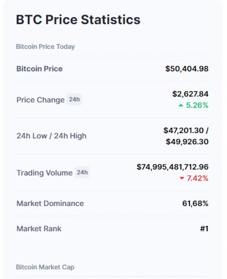 Стоимость биткоина впервые в истории достигла 50 тысяч долларов. Об этом свидетельствуют данные CoinMarketCap, передает Tengrinews.kz.