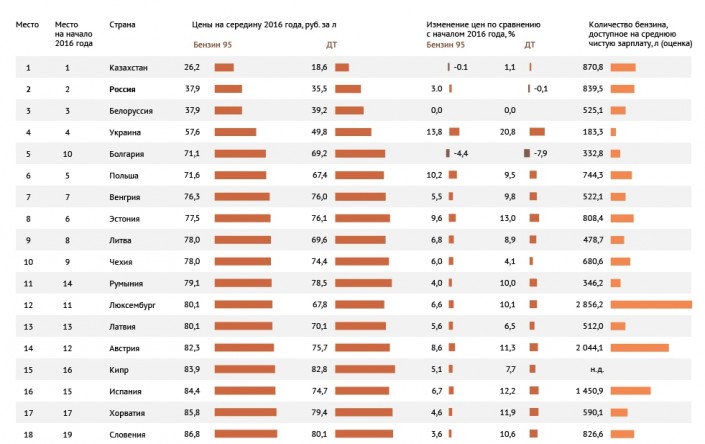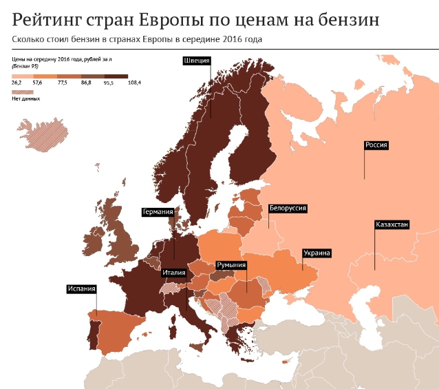 Что касается бензина, то как следует из недавно опубликованного исследования РИА "Рейтинг", самый дешевый бензин в Европе имеют возможность покупать жители Казахстана (140 тенге за литр АИ-95), России и других стран Таможенного союза, самая же высокая цена на топливо для автомобилистов сохраняется в Нидерландах (примерно 550 тенге за литр).