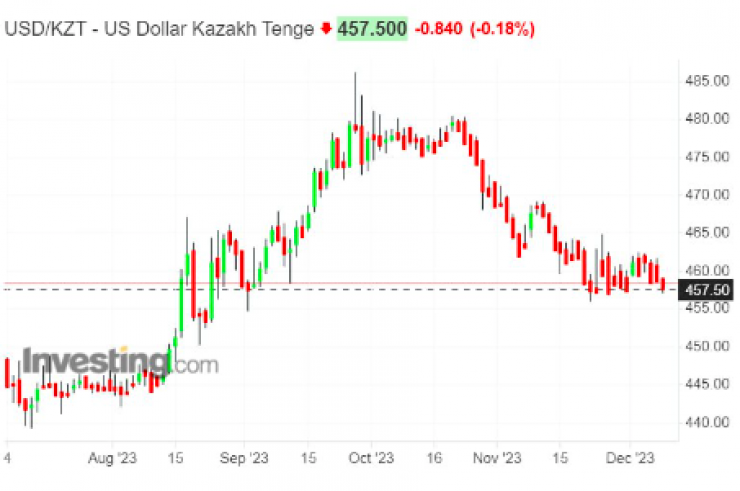 Отметим, что официальный курс Национального банка на 8 декабря составляет 459,91 тенге за доллар.