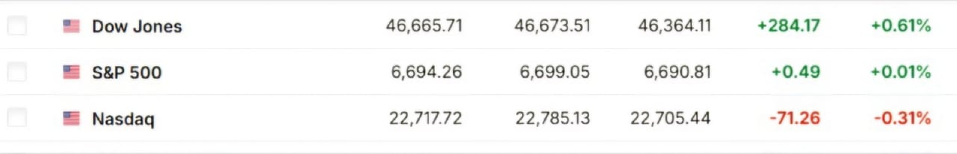 Индекс Dow Jones повысился на 0,61 процента, S&P 500 - на 0,01 процента. При этом NASDAQ незначительно снизился на 0,31 процента.