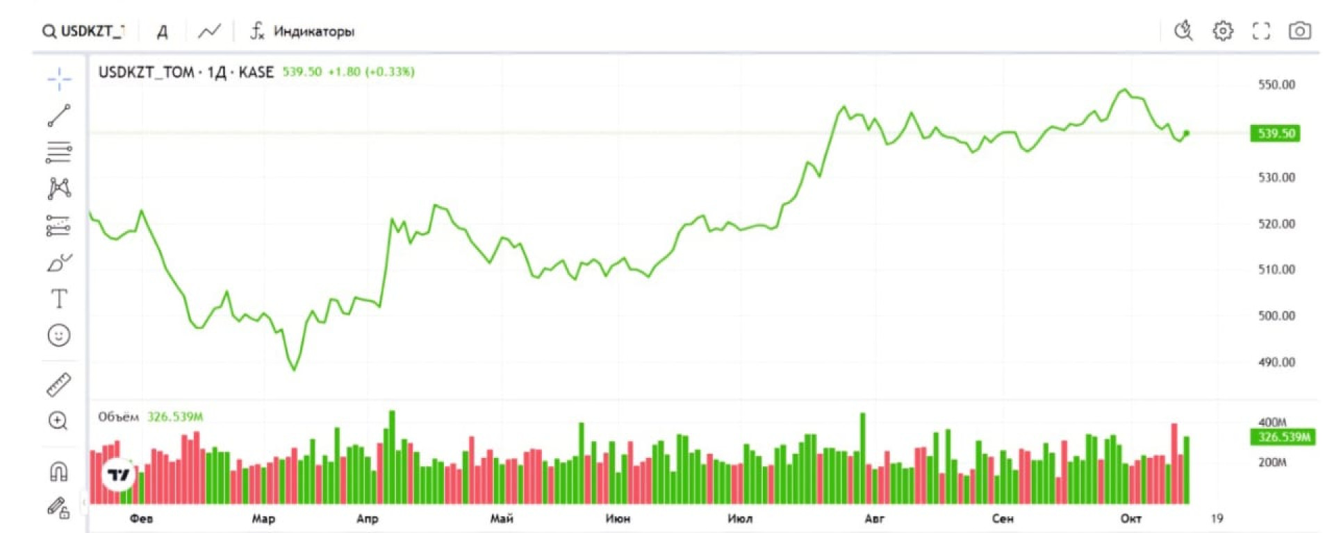 Отметим, что официальный курс Национального банка на 15 октября составляет 538,63 тенге за доллар.
