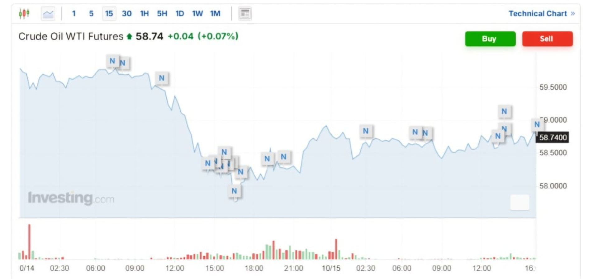 Стоимость ноябрьских фьючерсов на нефть марки WTI увеличилась на 0,07 процента - до 58,74 доллара за баррель.