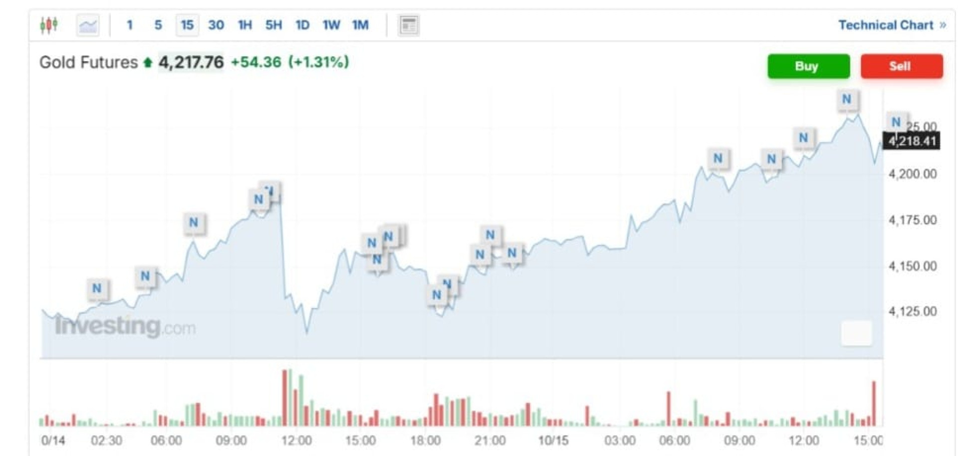Золото снова пробило рекордный уровень, поднявшись выше 4 200 долларов за унцию.