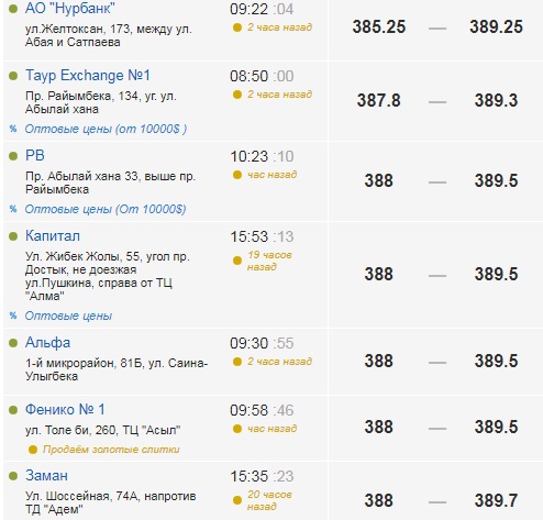 Курс доллара в обменниках, по данным Kurs.kz, составляет 388,5-389,7 тенге. Эта отметка близка к историческому рекорду, зафиксированному 7 августа.