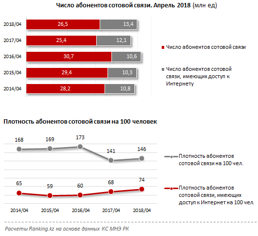 "Рост объемов услуг объясняется как увеличением числа абонентов, так и ростом цен. Так, текущей весной два из трех крупных операторов мобильной связи РК - Tele-2 и Beeline - повысили тарифы на свои услуги более чем на 10 процентов. Абонентов поставили перед фактом, что услуги подорожают, также при повышении абонентской платы сообщалось об увеличении мобильного интернет-пакета. Сохранить существующие условия и цены казахстанцы, желающие оставить прежний объем сетевого трафика, не могли", - комментируют аналитики.
