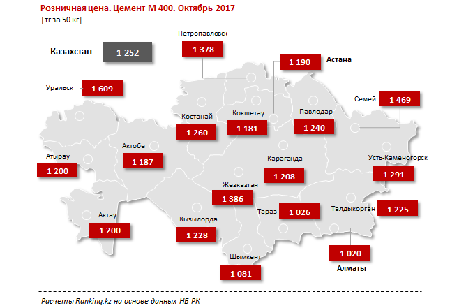 Опрошенные продавцы отмечают, что никогда еще цемент не дорожал так сильно и так часто, как в 2018 году. В настоящее время цены в Алматы наблюдаются в районе 1 300 тенге за мешок и 23 000 за тонну. Для сравнения, в октябре 2017 года мешок цемента в мегаполисе, по данным Ranking.kz, можно было купить примерно за 1 020 тенге.