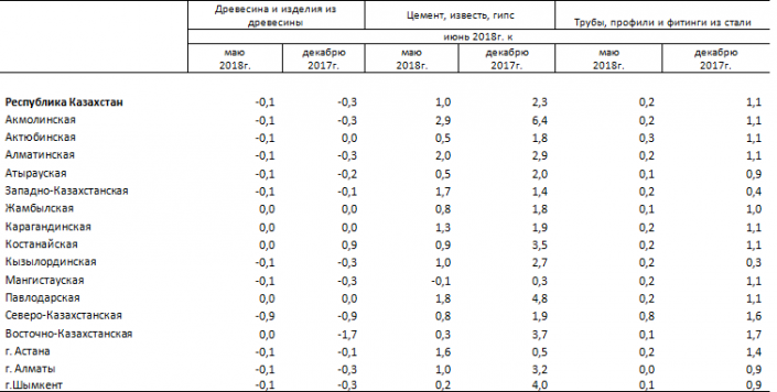 По данным статистики, по состоянию на 1 июня 2018 года наибольший рост цен на цемент произошел в Актюбинской и Павлодарской областях.