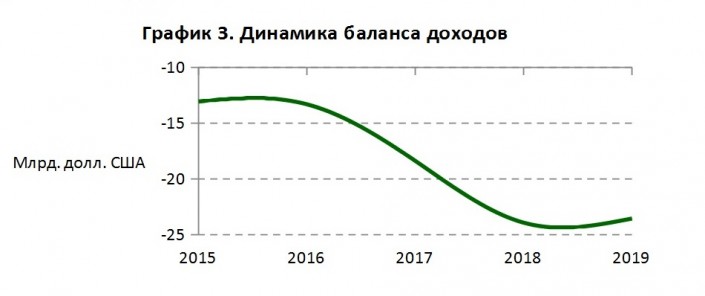 Баланс доходов отражает потоки доходов от инвестиций, оплаты труда и безвозмездных трансфертов. Отрицательный баланс доходов свидетельствует, что начисленные иностранным инвесторам доходы к выплате превышают доходы к получению отечественными субъектами экономики.