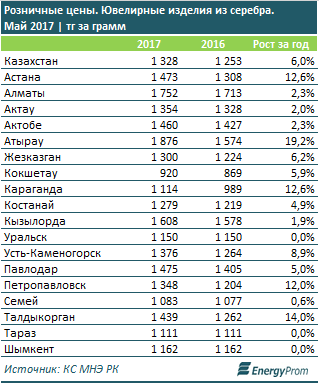 Серебряные украшения подорожали к лету на 6 процентов за год, до 1,2 тысячи тенге за грамм.