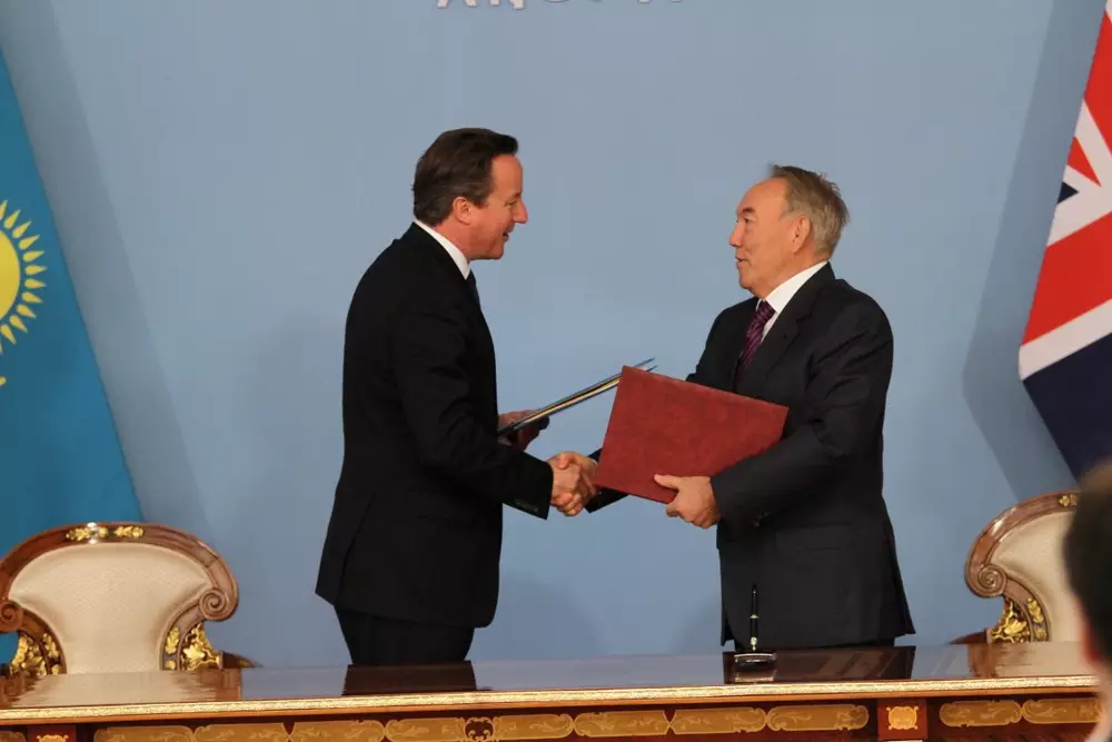 Великобритания и Казахстан подписали соглашений на миллиард долларов Президент Казахстана Нурсултан Назарбаев и премьер-министр Великобритании Дэвид Кэмерон (слева). Фото Марат Абилов