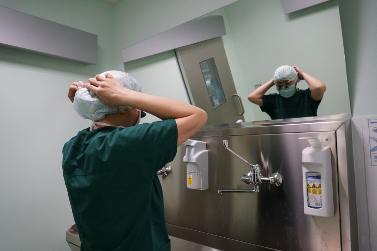 Операция продлилась почти семь часов. Для беременных сложность составляет не столько стояние на ногах, сколько невозможность сходить в туалет или поесть.