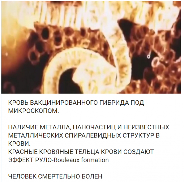 "Таким образом, утверждения о том, что привитые люди страдают от фатальных болезней, - фейк. Во-первых, агрегация эритроцитов - обратимый процесс, во-вторых, нет единого мнения о том, почему формируются руло, в-третьих, их наличие в крови привитых людей не доказано и не может считаться свидетельством неизлечимых заболеваний, вызванных вакцинами", - заявили эксперты.