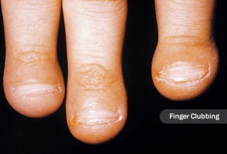Кроме того, обратить внимание следует и на ногтевую пластину. В частности, насторожить должно то, что кожа вблизи ногтей стала блестящей, тогда как сами ногти - изогнутыми и выпуклыми при рассмотрении сбоку.