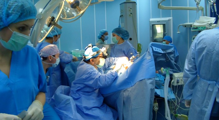 Врач Ю Дже Сок из Южной Кореи провел в Центральной клинической больнице Медицинского центра Управления делами Президента в Алматы, также известной как Совминовская больница, мастер-класс, продемонстрировав казахстанским врачам операцию на сердце методом Midcab, передает корреспондент Tengrinews.kz. Midcab расшифровывается как Minimally Invasive Direct Coronary Artery Bypass - малоинвазивное прямое шунтирование коронарных артерий. Показанием к такой операции является в частности ишемическая болезнь сердца.