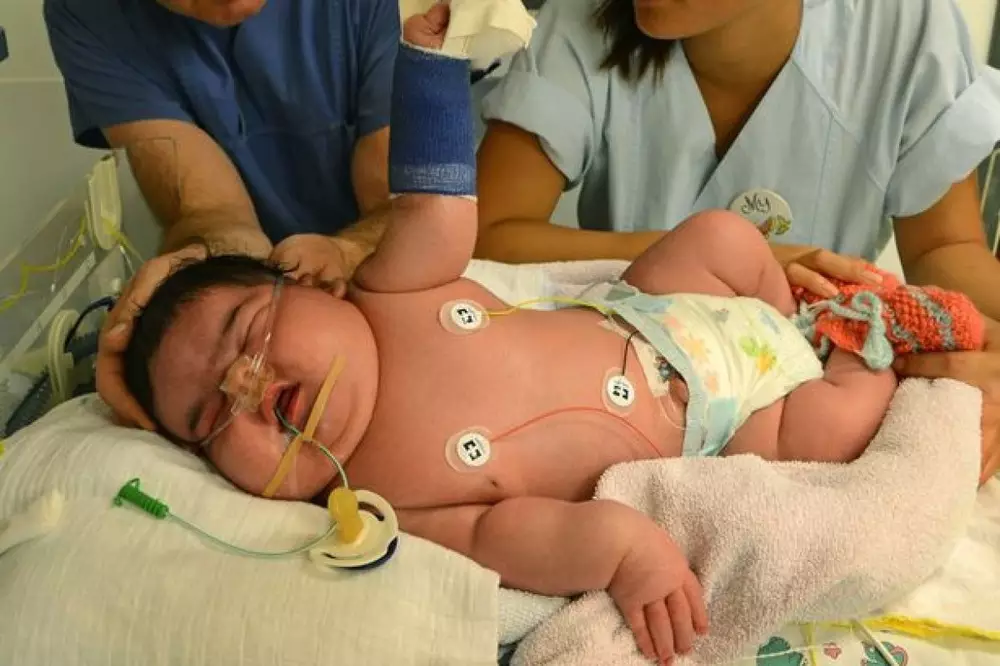 Вообще же самый тяжелый ребенок за всю историю наблюдений родился в 1879 году в Канаде. Правда, мальчик весом 10,77 килограмма скончался через 11 часов. В 2005 году в Бразилии родился мальчик весом 7,7 килограмма.
