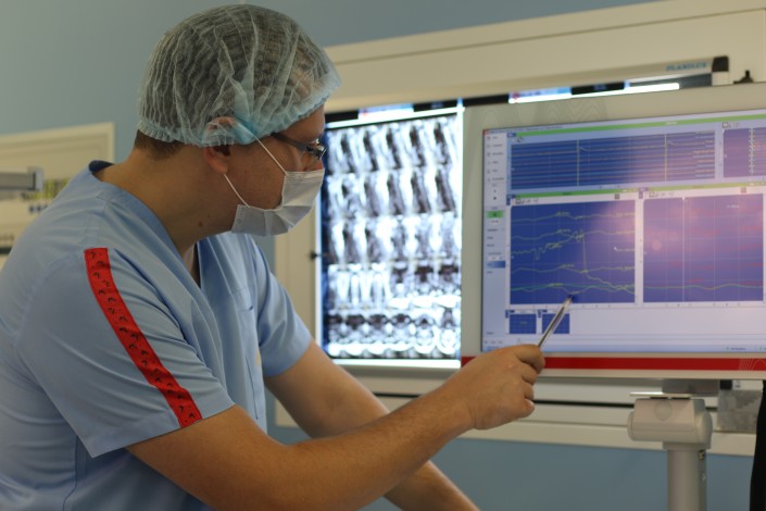 Чтобы добиться лучшего результата, нужно видеть реальную картину: нейромониторинг с помощью электростимуляции нервных окончаний в головном мозге позволяет нейрохирургам наблюдать ту самую реальность: как пролегают нервы в области опухоли и где можно удалять, не боясь повредить жизненно важные функции.