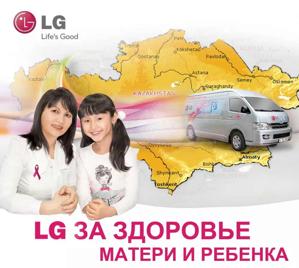 На протяжении пяти лет компания LG Electronics Almaty Kazakhstan совместно с общественным фондом "Здоровая Азия" в рамках совместного социального сотрудничества при поддержке социального совета фракции НДП "Нур Отан" и Министерства здравоохранения реализует широкомасштабную скрининговую программу "Здоровая Азия с LG", цель которой - обследование женского населения Казахстана на предмет профилактики онкологических патологий молочной железы.