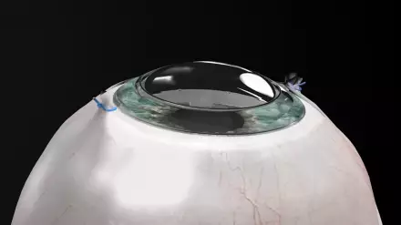 При операции хирурги удаляют поврежденную роговицу и раскрывают склеру (белую оболочку глаза - прим. автора). Имплант устанавливается таким образом, что его края уходят внутрь раскрытой склеры. После ее закрытия он полностью приживается, а вся операция занимает около часа.