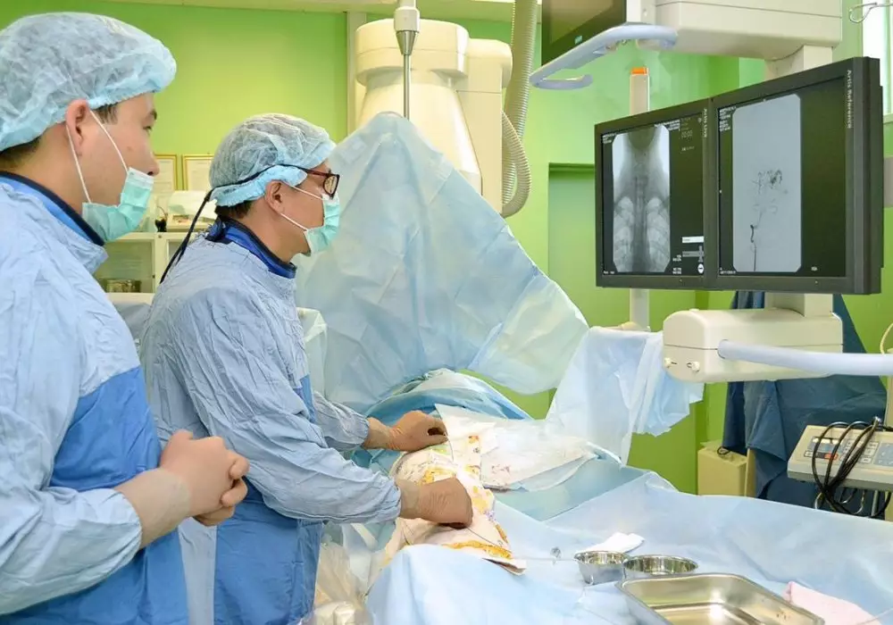 "Эмболизация - это уникальная методика, которая состоит в введении через тонкий катетер в пораженный аневризмой сосуд специальных эмболизирующих веществ. Особенность таких операций в том, что они малотравматичные. Все манипуляции выполняются закрытым способом, без разреза тканей и трепанации черепа", - пояснил сосудистый нейрохирург Асылбек Калиев.