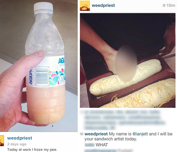 Летом 2013 года хитом западного, а потом и российского Интернета стал скандал с участием сразу двух сотрудников сети быстрого питания Subway. Кэмерон Боггс (Cameron Boggs) и Иан Джетт (Ian Jett) из штата Огайо потрясли "Инстаграм" фотографиями замороженной мочи, хранившейся в холодильнике на работе, булок для сэндвичей в форме полового органа, а также пениса, приложенного к готовому сэндвичу.