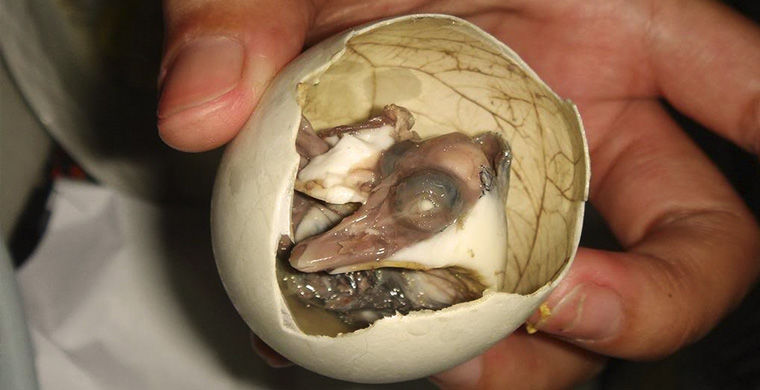 Филиппинцы - убежденные мясоеды. Жаренные на гриле курица, свинина и вареные яйца являются главной уличной закуской. Впрочем, есть здесь одно очень странное, на первый взгляд, блюдо. Речь идет о вареном яйце с зародышем под названием "балут". Для филиппинцев это обычное блюдо. "Что же это получается? - удивляются они. - Курицу едят, яйцо едят, а куриный зародыш не едят. А пахнет ведь вкусно так, рыбой".