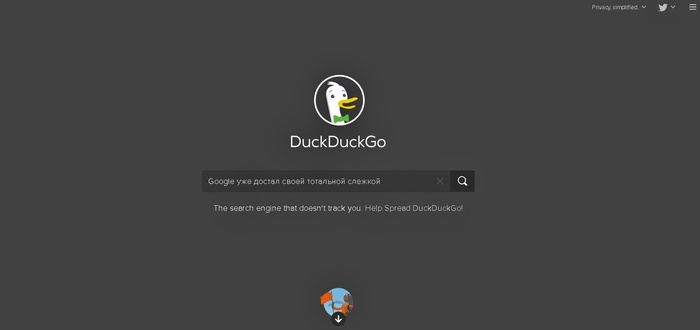 DuckDuckGo - это довольно известная поисковая система с открытым исходным кодом. Серверы находятся в США. Кроме собственного робота, поисковик использует результаты других источников: Yahoo, Bing, "Википедии". При поиске система обеспечивает максимальную приватность и конфиденциальность. Система не собирает никаких данных о пользователе, не хранит логи (нет истории поиска), не показывает таргетированную рекламу, использование файлов cookie максимально ограничено.