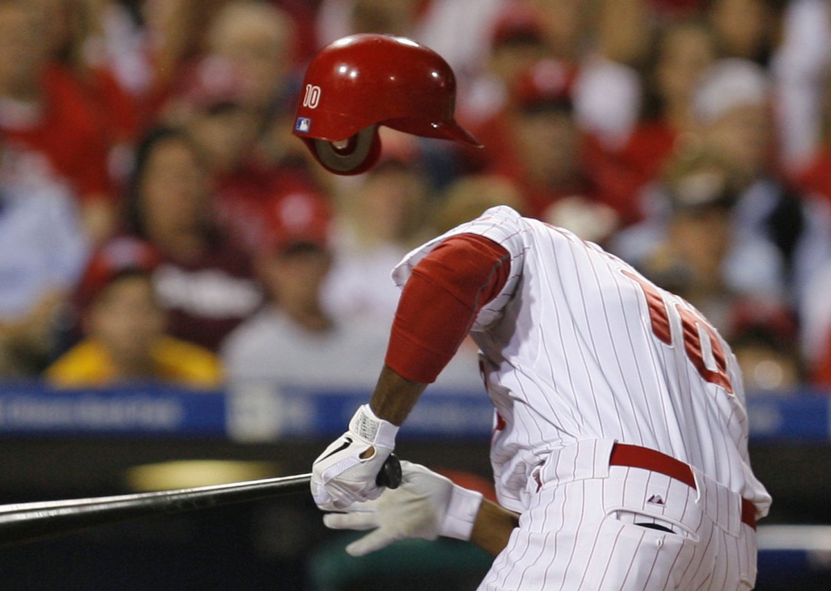 Этот якобы безголовый бейсболист Филадельфии на самом деле просто получил удар в лицо (отчего слетел шлем), от которого он, кстати, пытался уклониться.