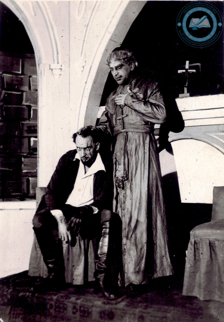 Ю.Л. Рутковский (слева) в роли Овода, Василевский в роли Монтанелли в спектакле "Овод" по одноименному роману  Э.Л. Войнич. Алма-Ата. 1936-1939 гг. ЦГА РК. Ф. 1712. Оп. 1. Д. 52.