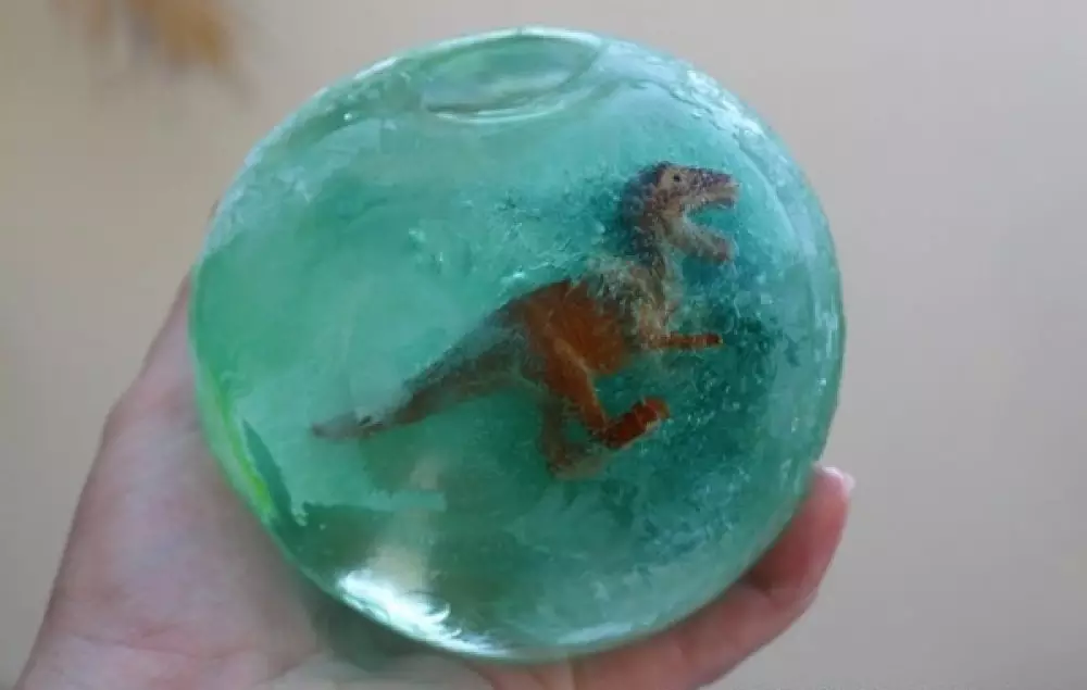 Вам понадобятся: воздушный шар, небольшой пластиковый динозавр, вода, пищевой краситель (по желанию), молоток, защитные очки. Возьмите динозавра и засуньте его в воздушный шар. Налейте в шар с динозавром воду (можно добавить еще и краситель) и завяжите его. Поставьте шар в морозильник на несколько часов. Когда вода застынет, разорвите шарик. Наденьте защитные очки ребенку и себе и начинайте раскопки, чтобы добраться до динозавра.