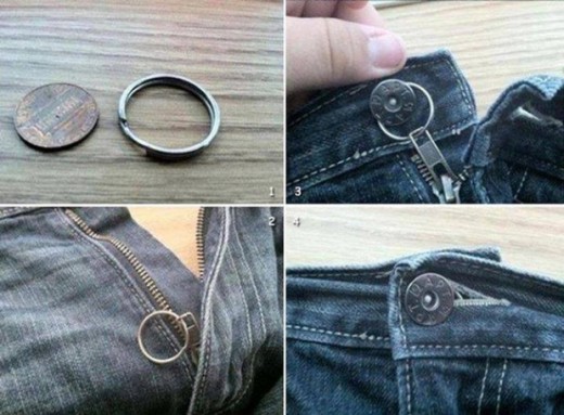 Если молния на ваших брюках постоянно предательски расстегивается, то исправить положение сможет простое кольцо со связки ключей. Наденьте его на язычок молнии, а затем зацепите за пуговицу.