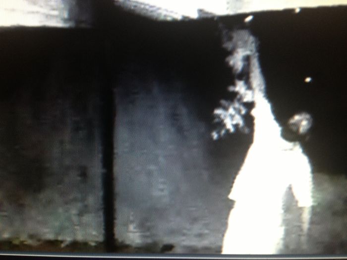 Это был всего лишь курьер. Он пытался веткой снять с крыши бумажный пакет, который он неудачно закинул во двор. Со стороны это выглядело устрашающе.