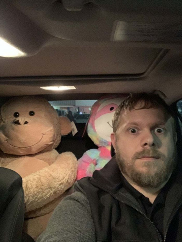 #17 "Я был спокоен, пока не посмотрел в зеркало заднего вида. Это жена приготовила подарки детям!"